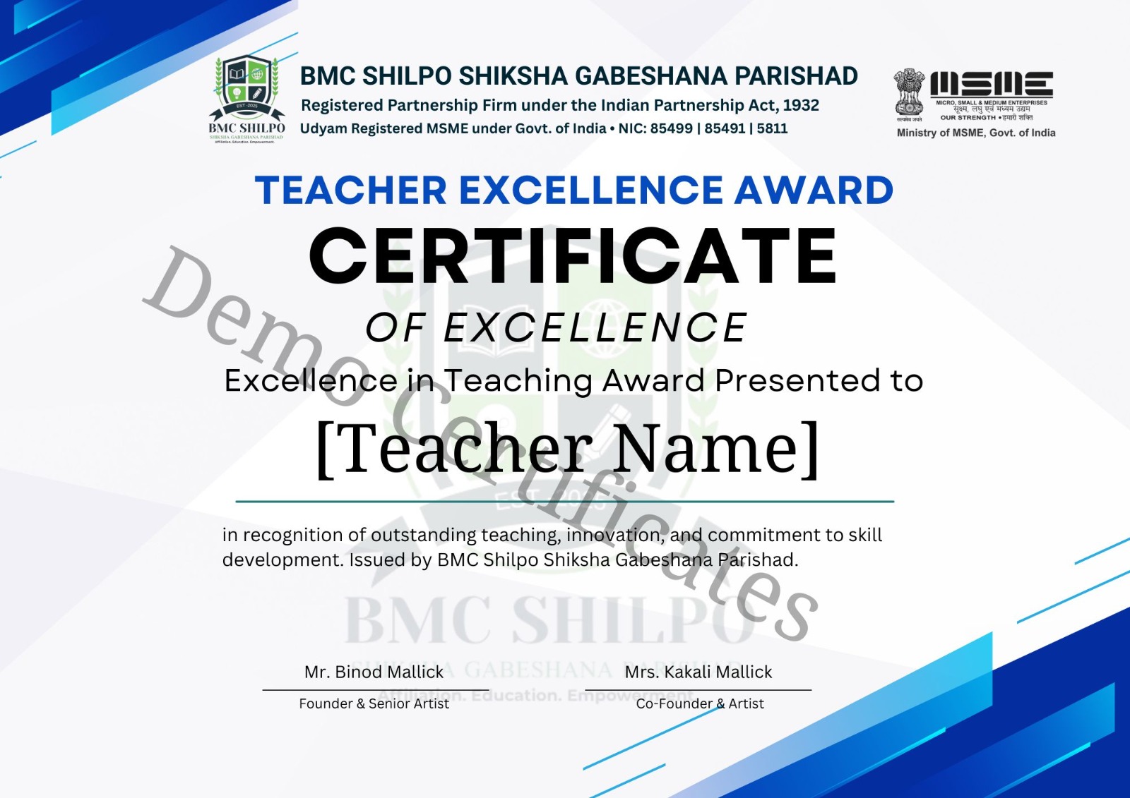 Founder & CEOAt BMC, our mission is to empower learners and educators through quality skills, creativity, and innovation. We are committed to transparency, excellence, and providing global-standard opportunities for growth. With your support, we continue building a strong, creative, and future-ready community.